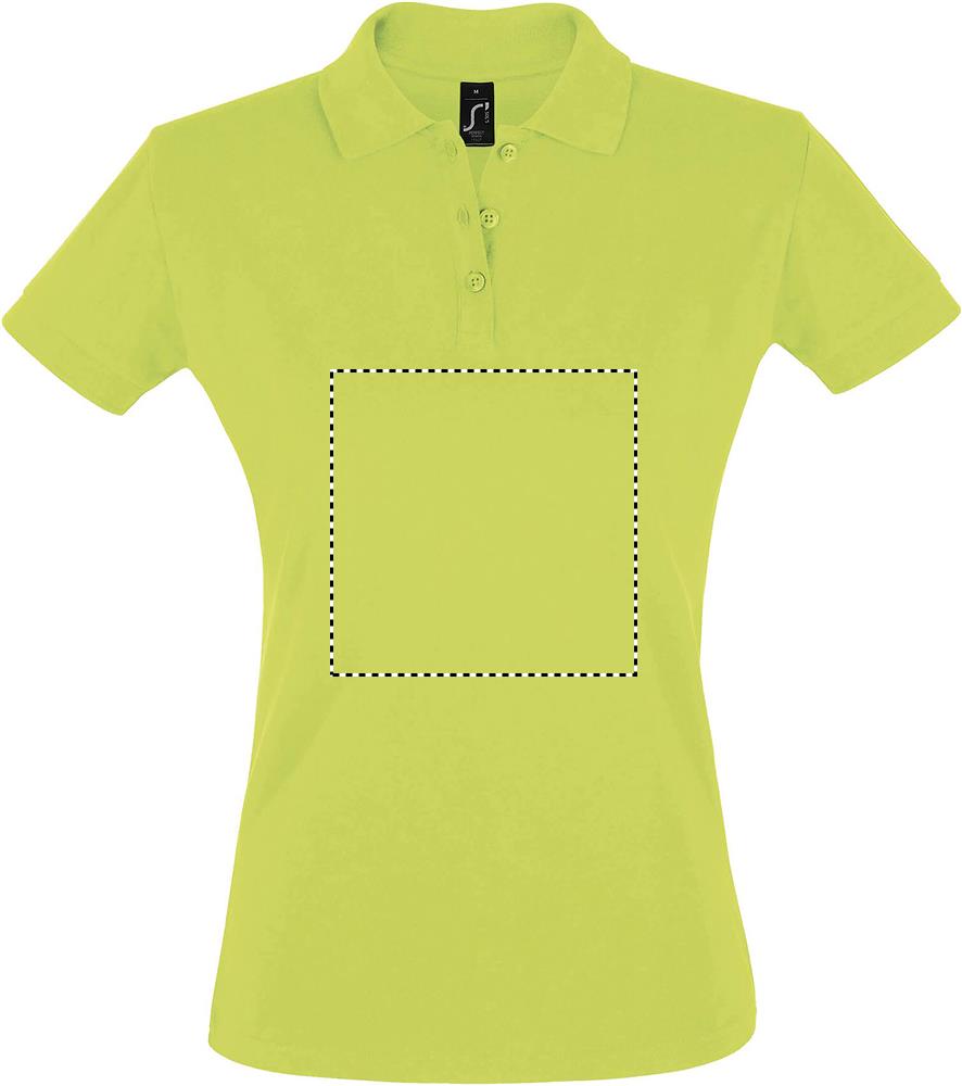 SOL'S PERFECT Damen Polo-Piqué mit Rippkragen und -bündchen, Nackenband, Kurzarm, Knopfleiste mit 2 farblich abgestimmten Perlmuttknöpfen, Seitennähte, Ersatzknopf am Seitenlabel innen. Material: 180g/m², 100% gekämmte, ringgesponnene Baumwolle.